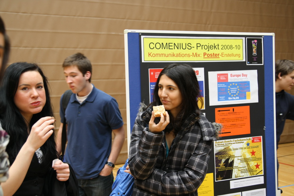 Schülerinnen und Schüler präsentieren mit Stellwänden, Infoständen, Powerpoint-Präsentationen und Erlebnisberichten ihre Erfahrungen, die sie während der Vorbereitung und Durchführung von Unterrichts- und Mobilitätsprojekten gemacht haben. Es werden die positiven Auswirkungen auf Bewerbungschancen und berufliche Qualifikation aufgezeigt. Die Projekte umfassen Schulpartnerschaften mit 12 Städten im gesamten EU-Raum von Skandinavien, den britischen Inseln, den Benelux-Staaten bis Süd- und Osteuropa. |